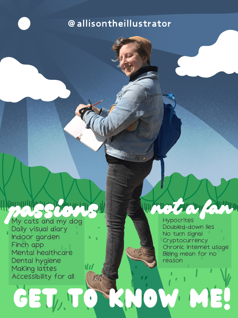 Hi, I’m Allison – the illustrator behind the colors, characters, and tiny worlds you see here. My work lives at the intersection of curiosity and compassion. I paint people, pets, and places with a focus on emotion and storytelling, letting each piece feel like a heartbeat on paper.